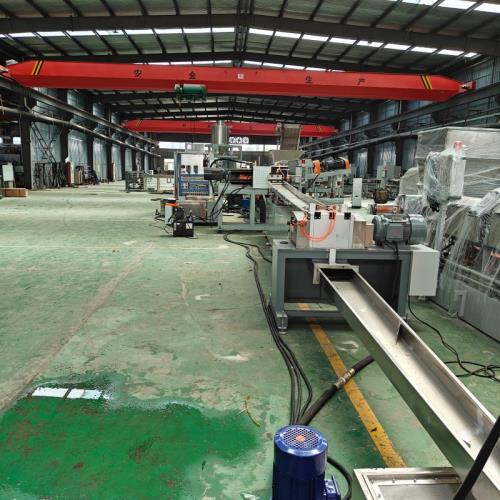 同時(shí)螺桿旋轉(zhuǎn)的剪切力與壓縮作用使原料進(jìn)一步熔融,形成均勻熔體。均化段的螺桿將熔融塑料定量推送至機(jī)頭模具,模具上的孔道決定顆粒直徑,熔體擠出后經(jīng)冷卻固化,再由切粒機(jī)切成顆粒。功能用途 塑料造粒機(jī)采用特殊的螺桿設(shè)計(jì)及不同配置,適用于生產(chǎn)PP、PE、PS、ABS等多種塑膠的再生及混色造粒,可將廢舊塑料回收再利用,制成的塑料顆粒可用于生產(chǎn)各種塑料制品,實(shí)現(xiàn)資源的循環(huán)利用。切粒方式- 水冷拉條切粒:熔體從模具擠出成條狀,經(jīng)水槽冷卻固化,再由牽引機(jī)拉至切粒機(jī)切成顆粒,適合PE、PP等低黏度塑料。- 水下切粒:熔體從模具擠出后立即進(jìn)入循環(huán)水腔,被高速旋轉(zhuǎn)的刀片在水下切粒,顆粒與水混合后干燥,適合PVC、工程塑料等高黏度或熱敏性材料。節(jié)能措施 動(dòng)力部分可采用變頻器,通過改變電機(jī)的功率輸出實(shí)現(xiàn)節(jié)能;加熱部分可采用電磁加熱器,相比老式電阻圈,節(jié)能率約30%-70%。輔助設(shè)備 主要包括放線裝置、校直裝置、預(yù)熱裝置、冷卻裝置、牽引裝置、計(jì)米器、火花試驗(yàn)機(jī)、收線裝置等,不同用途的擠出機(jī)組選配的輔助設(shè)備有所不同。
